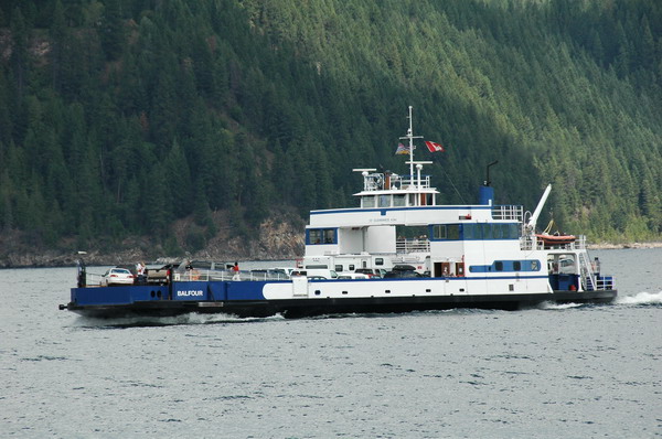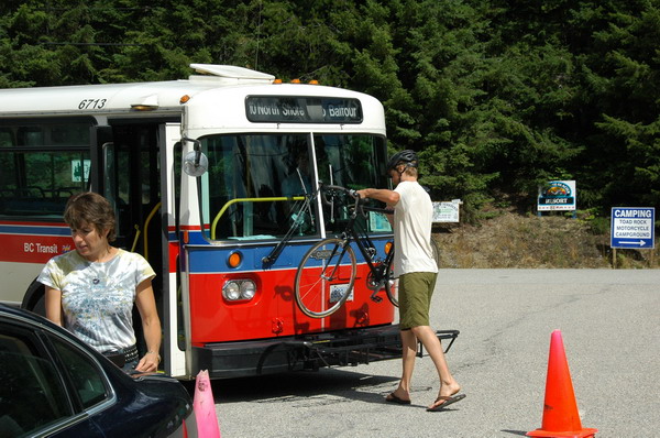 At the Kootenay Ferry at Balfour, another passenger arrived by bus with his bike on the front of the bus.