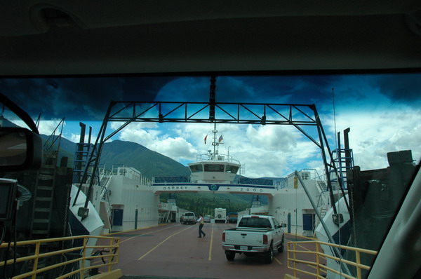 Loading the ferry, which takes about 80 cars and is the longest free ferry in the world.