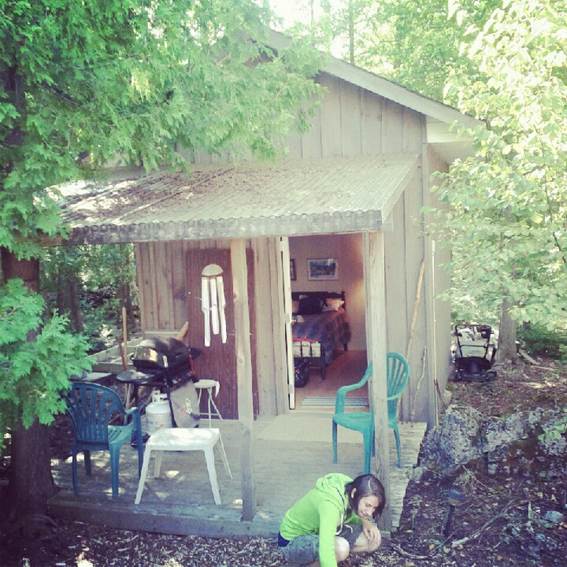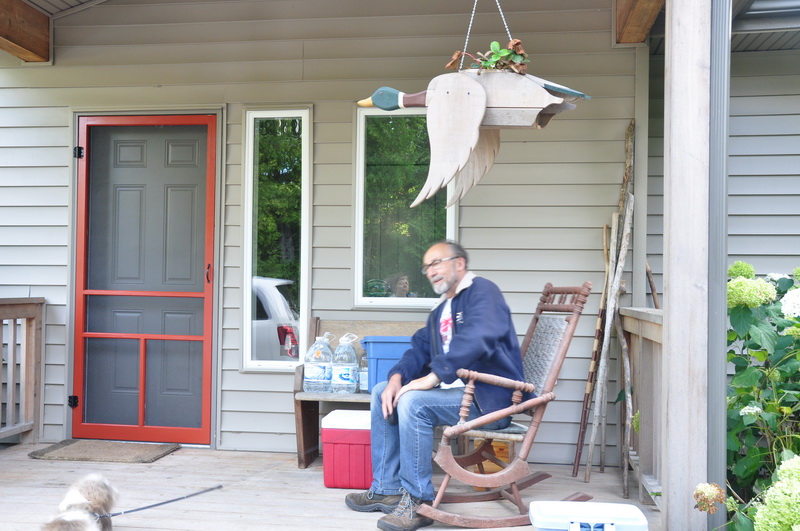 James welcomed us (sadly Teresa had to work and cannot join us) and after a cup of tea we took a short hike around a little of the 50 acres they have here. This is a shelter where a black bear hibernates.