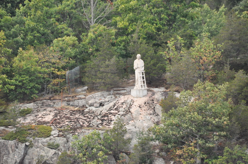 Statue of St Lawrence (watching over his river) further upstream.