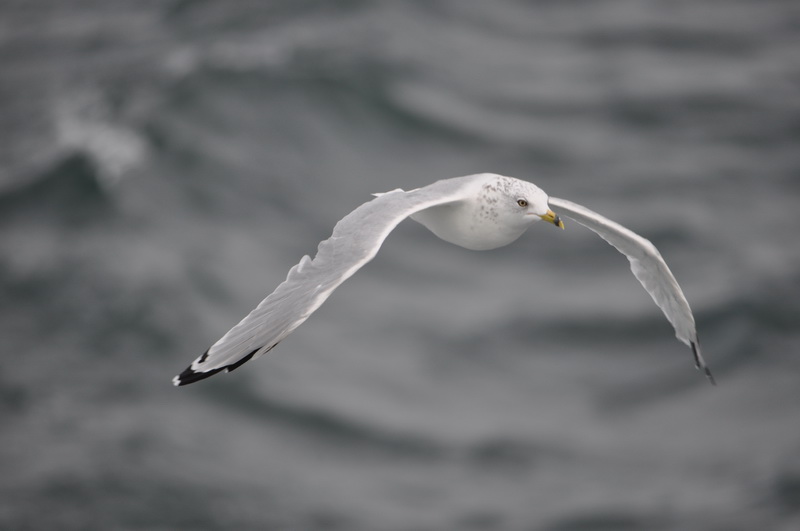 A seagull flew alongside - overtook us - and then dropped back, tired.