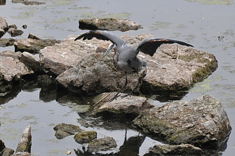 Heron, rock hopping.