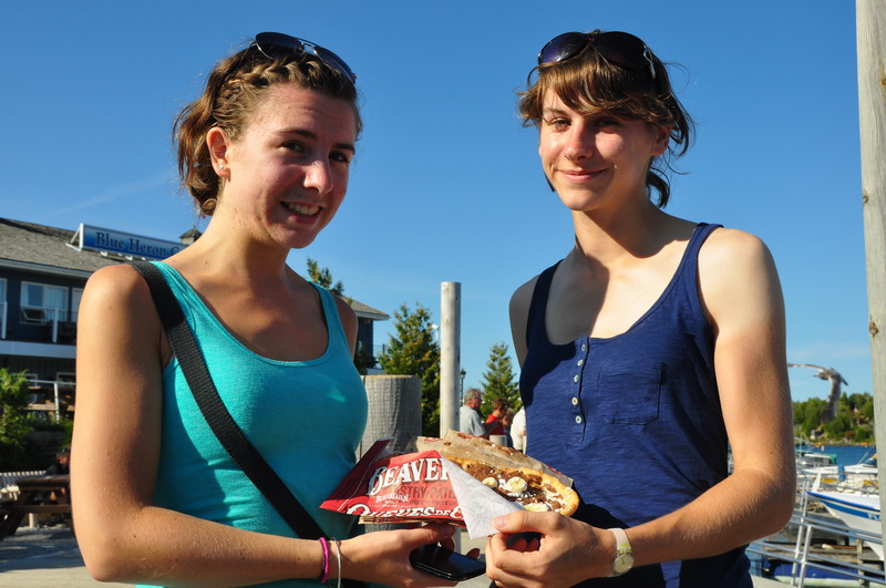After a lovely lunch back at the cottage, relaxing on the deck with an Upper Canada Lager and James' home made soup, we headed into town for shopping, after which the girls shared a Beavertail (like a flat doughnut with chocolate and banana). Afterwards, Rosie had chocolate on hands, face and legs!