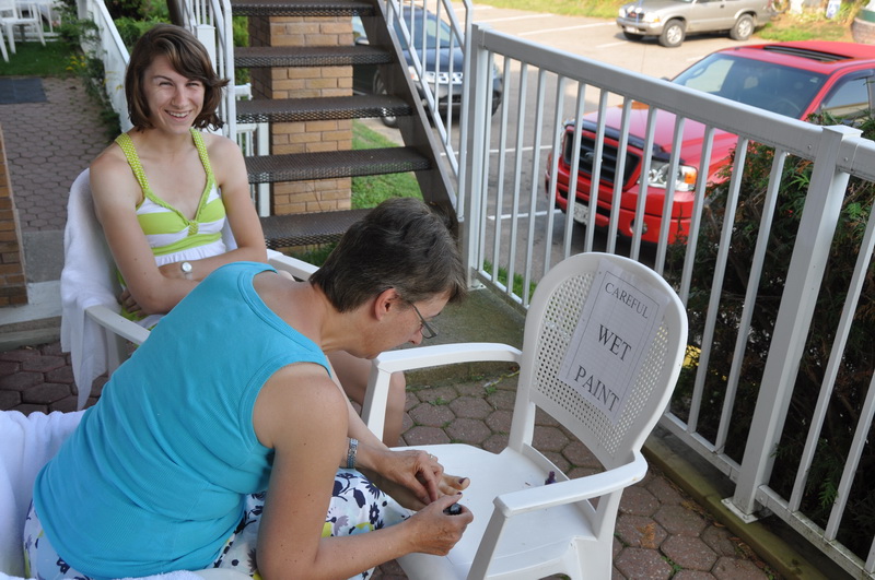 Before we can go out, B wants her nails painted. The chair was an amusing coincidence!