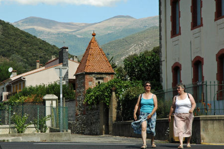Leaving Mary in charge of the camp, Meld, Mark and Aid headed back to town for the "folklorique" that is part of the Fete Major of Arles-sur-Tech which is happening this weekend. On the way down we passed yet more exotic fruit on people's gardens - kiwis, passion fruit, grapes...We returned from the river nicely cooled and found the Ethels had left an Ethel behind. We didn't really have anything to do so we all sat down in our book club and read our books, although I was complained at for reading too fast.
