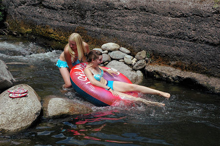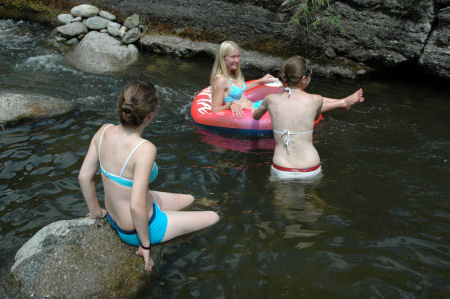 After a picnic lunch the girls went to the river that runs alongside the campsite...