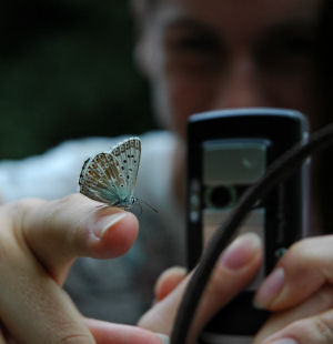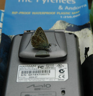 We then continued to the head of the side valley , where we had a picnic lunch. A small butterfly made friends with Dierdre.