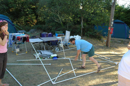 Arriving back at the campsite we found that our gazebo had been demolished by a strong wind. Still, it should be retrievable as we have another wrecked one back home.