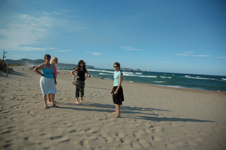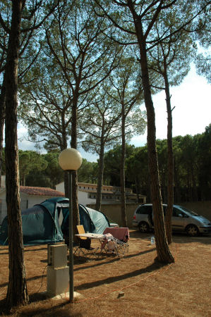 Soon we reached Camping Neptuno, found a pitch that was big enough, and ate lunch. We then erected the tent in strong winds (some people deputed to stop it flying away until it was pegged down). And here we are again...