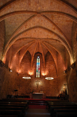 A dash back to the campsite, a quick shower, then Meld and I went into Pals to Mass. This wasn't totally successful, as the traffic was heavy, parking was abysmal (it's their Festa Major this weekend, and things were starting to get going for the evening) and "El Pedro" is on top of the hill. Still, we were only 10 minutes late - for a Mass that lasted just 30!