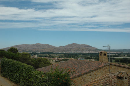 Having driven through a few small villages, we stopped to climb a small hill. The girls stayed with the car and talked to some horses whilst Meld and I made the 10-minute ascent. From the top there was a good view over the flat land between Torroella di Montgri and Pals - the mouth of the river Ter, now constrained and used to irrigate the fertile plain. Of course, my friend Montgri was still in evidence.