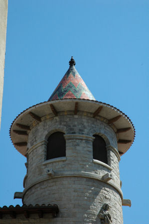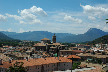 We pushed on to Olot, the main town of the area, which actually has 5 volcanoes within the town itself. We managed to park in a narrow street behind the tourist information office which promised to stay shady due to the height of the buildings on either side. The tourist office itself was situated within an impressive building - I think it might have been an old monastery and these were the cloisters - so big there were 3 levels. Although there was a covering over the top, this was originally roofless, reminding Meld and I of the many buildings we saw in Seville which contain an open courtyard.