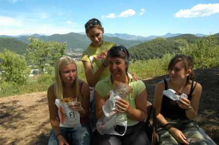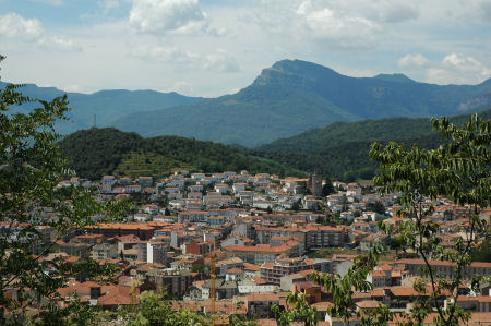 Largely on a new motorway we climbed into La Garrotxa over bridges and through tunnels, pausing at Castellfollit de la Roca to see the small town perched on a cliff. (Actually we drove past on the motorway and turned back through the town when we realised what we were missing). We passed the Museum of Sausages on the way.