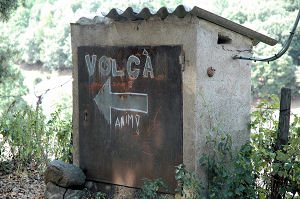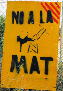 We then continued on a twisting road back to Banyules before rejoining the main road back past Gerona to Pals, on which we saw this interesting variation on the Catalan protests against the M.A.T. (there were similar protests against the T.H.T in French Catalonia). We're not sure, but we think THT stands for Tres Haut Tension (and MAT for Muy Alto Tension) and the protest is about a proposed very high voltage power link through Catalonia. Anyway, we liked the idea of the Catalan donkey kicking down the pylons.
