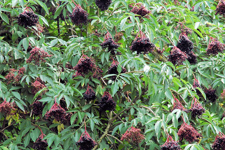 Whilst the others drove on to Santa Pau, I walked the couple of miles, passing a winemaker's delight - an elder tree heavy with berries.