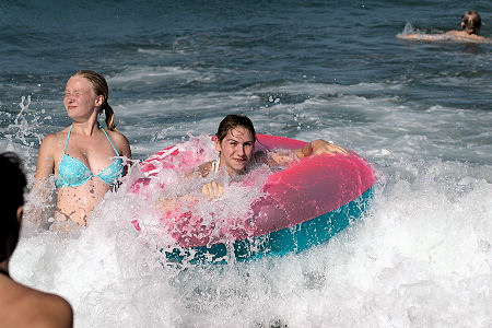 Then we drove back to Platja de Pals and went to the beach. Bridget, Kim and I enjoyed the water; Meld swam and nursed her gammy leg; Rosie swam, got overwhelmed by a wave, and decided sunbathing was more her style.