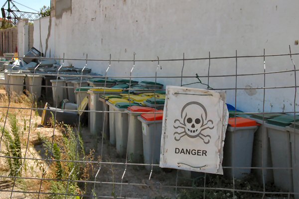 Leaving the town there was a dangerous collection of retired wheely bins on our left.