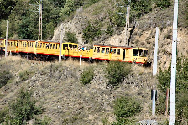 We drove into Spain, the town of Puigcerda, but couldn't find anywhere suitable for a picnic, so we filled up with cheap diesel (EUR0.999 a litre - about 68p). Then back through Bourg Madame onto the Route Nationale back towards the Conflent, stopping for a picnic huddled around a shady picnic table.