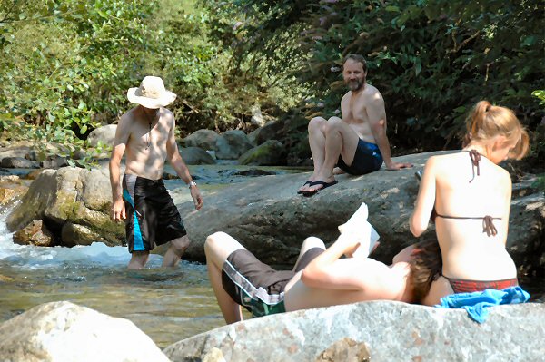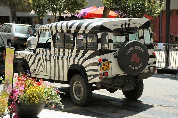 Back to camp, pick up Joe and Katherine, then over the Vernet-les-Bains where we'd booked a table for lunch at a pizzeria / creperie off the main square. Rosie was very excited by the zebra-style Defencer that parked on the road below.