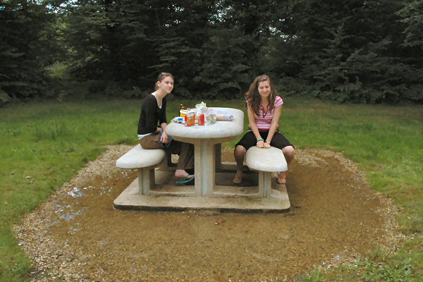 After a little tour of Gray, we headed for Dole to pick up the A39 past Bourg-en-Bresse, seeing some pretty villages and some interesting countryside as we skirted the western Jura and eastern Burgundy. When we stopped for lunch it was reasonably warm and sunny, though there was evidence enough for recent heavy rain in the moated picnic table.