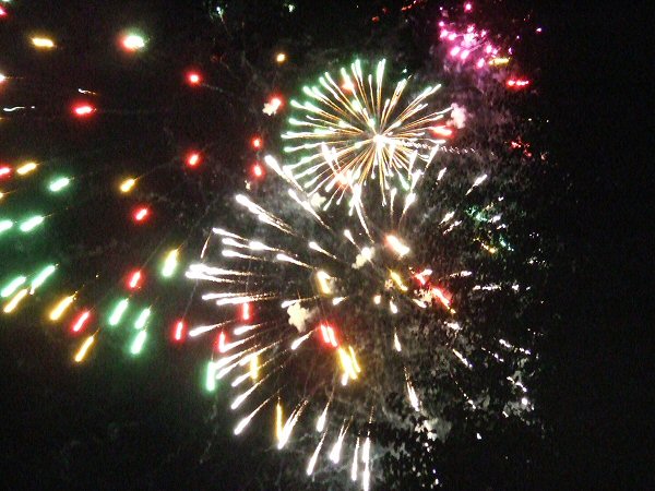 And so, after a supper of ravioli and sausage and lentils (all canned) we are relaxing in the warm but breezy evening. And just before bedtime, a firework display just down the road...S
