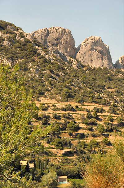 After lunch the ladies went swimming at Baumes-de-Venise and Aid went for a walk. The walk started round that back of the village of Baumes, where the houses cling to the hillside, and there isevidence of earlier troglodytic dwelings