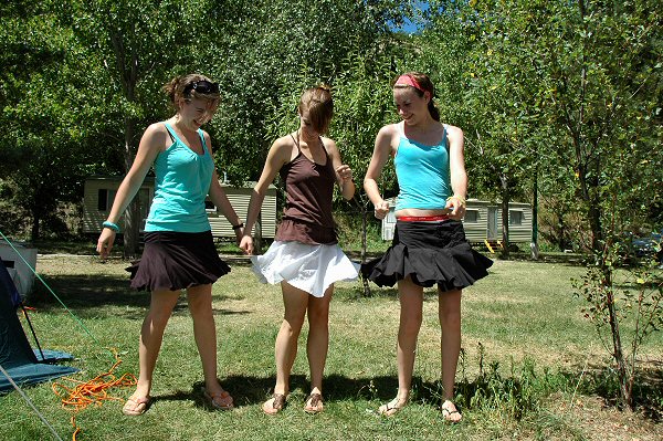 Back at the campsite the girls realised they were all wearing swishy skirts, and gave a demonstration.