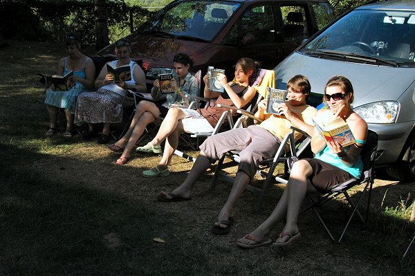 Back at the campsite we had something of a Harry Potter read-in and sun-catching session.