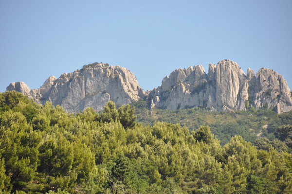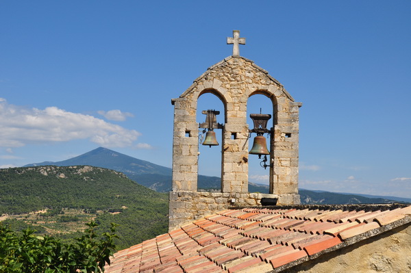We were all up pretty early, after a night disrupted by the sound of wind in the trees and the tent's vain attempts to escape its tethers. Leaving Meld to wash up after breakfast we went to the new Carrefour for supplies. Then we headed out to the east, approaching the village of Le Barroux (whose Chateau we visted 3 years ago).