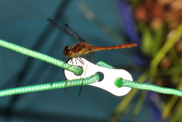 This morning the wind seems to have abated, and different wildlife has appeared. Several damsel flies like this buzzed around the tent.