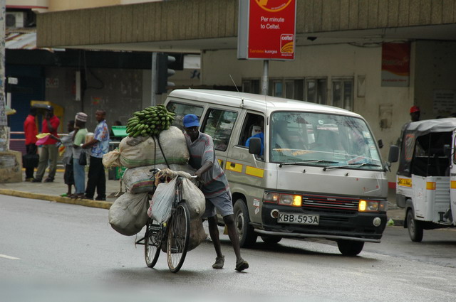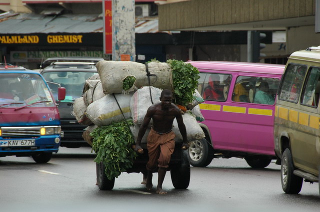 The handcart looks bad enough ... but bare feet! (These cart hauliers are called mkokoteni)