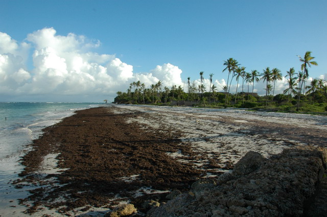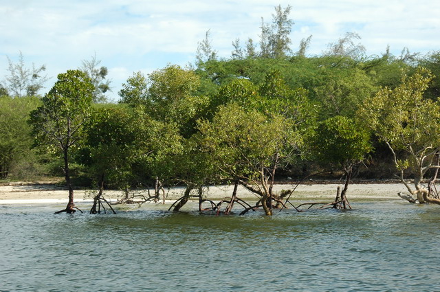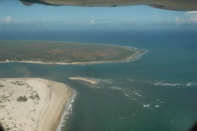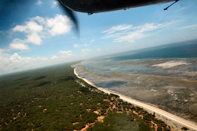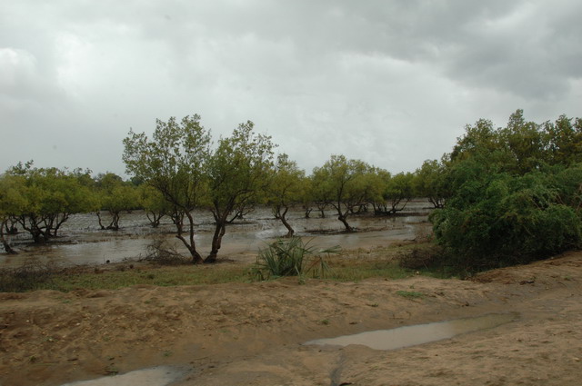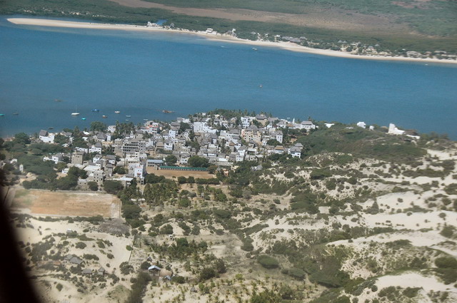 Heading east towards Ngomeni, along the Tana river delta, it's wide and shallow and used for salt production - that's salt piles not pyramids in the distance