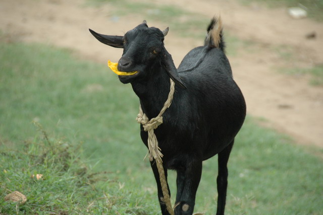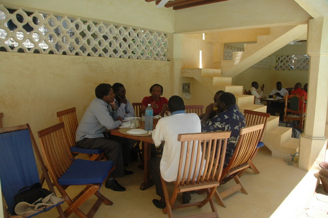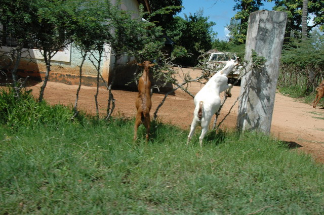 Eventuallly we decided there wuld be no meeting, so we got another taxi into Malindi town and had lunch at the Baobab restaurant, opposite one of the beaches. As we dined, a herd of gaots went past.