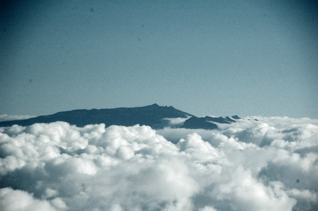 Slogging back up the hill you see Mount Kenya iahead, but the cloud was too low today.