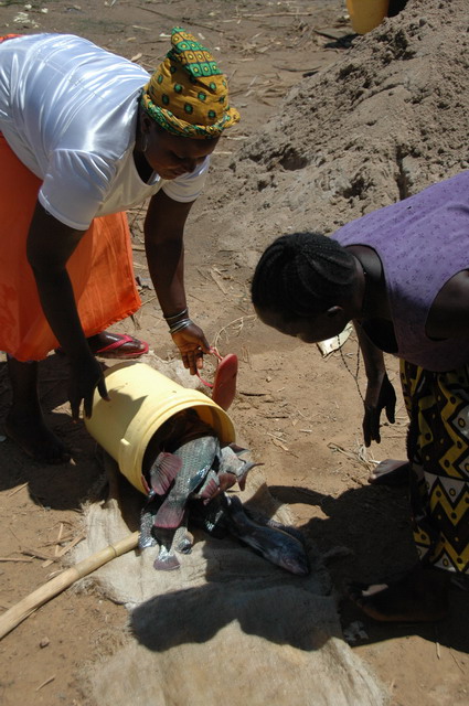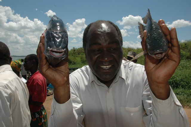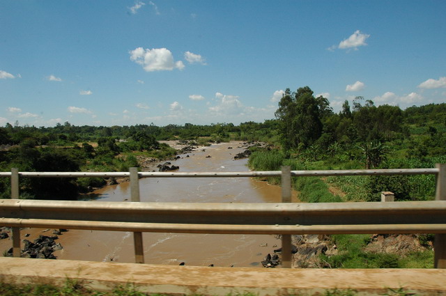 Heading back into the southern hemisphere, we passed round Mount Kenya and dropped down to cross the Tana river. Here there were fish on sale...