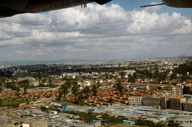 Descending over Nairobi, you see the mix of housing, from the slums (bottom left) gradually improving further away.