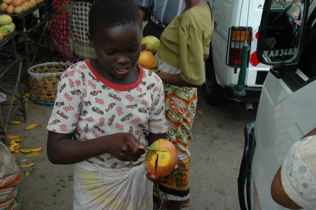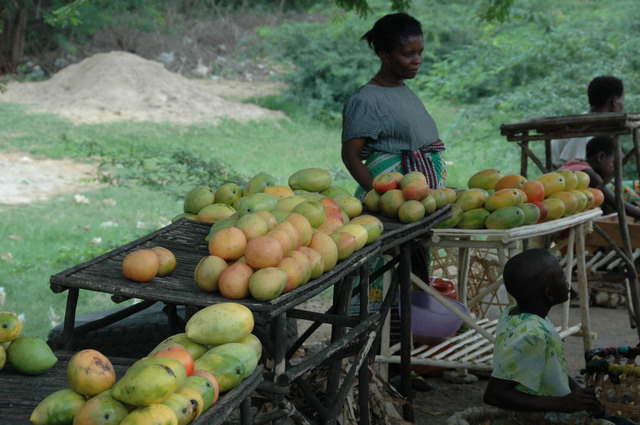 We bought mangoes to eat here and now - ripe and juicy, they'd only traveled a few hundred metres.