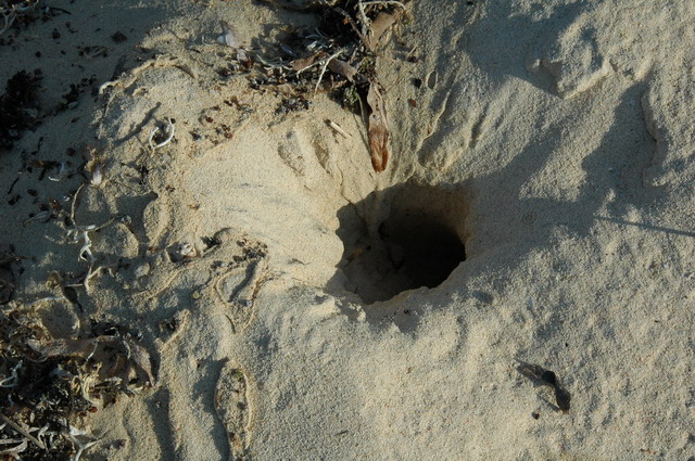 There were lots of crabs who either appeared from or disppeared into holes such as these as great speed.