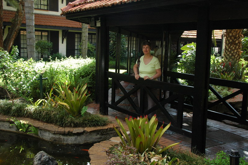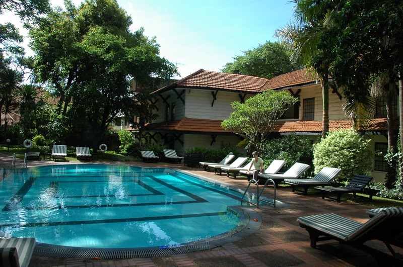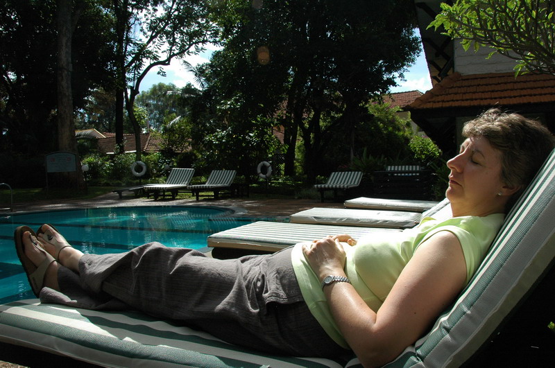 There's a swimming pool outside our room, but this is the other pool, Meld tries a lounger...