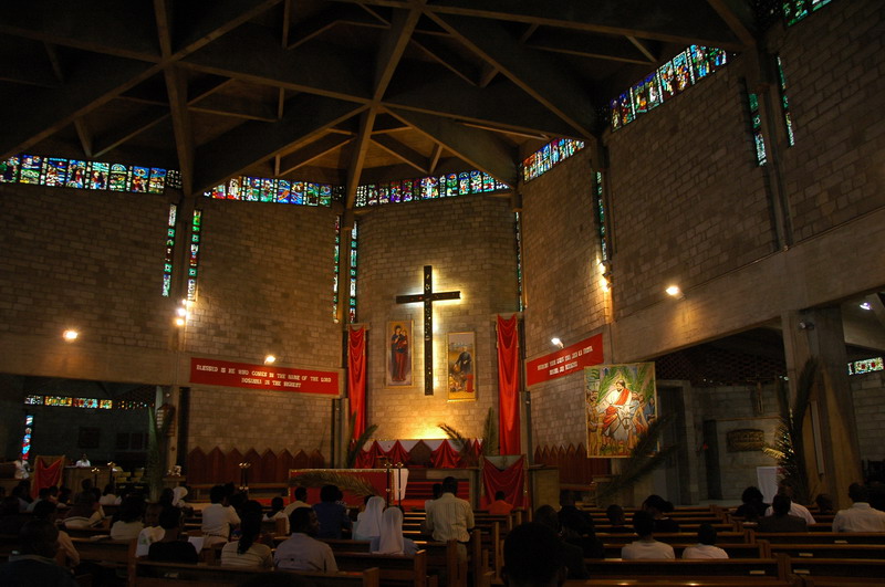 We walked across to the Consolata shrine for Palm Sunday Mass: big church, fairly full, then the procession came in and the numbers doubled! We were given fresh palm leaves, in clumps, and people waved them in the air as we sang Hosanna, the leaves clicking together as impromptu percussion. Much more animated than in the UK!