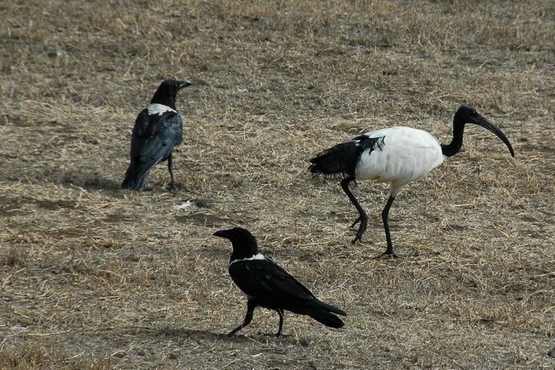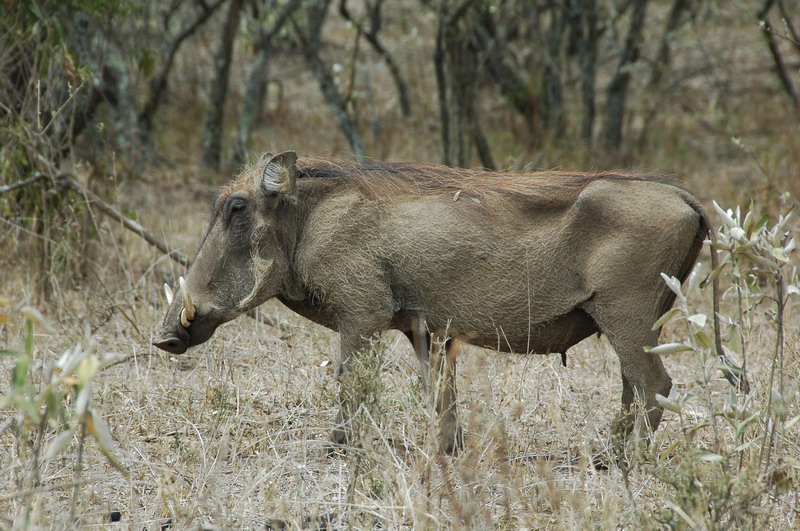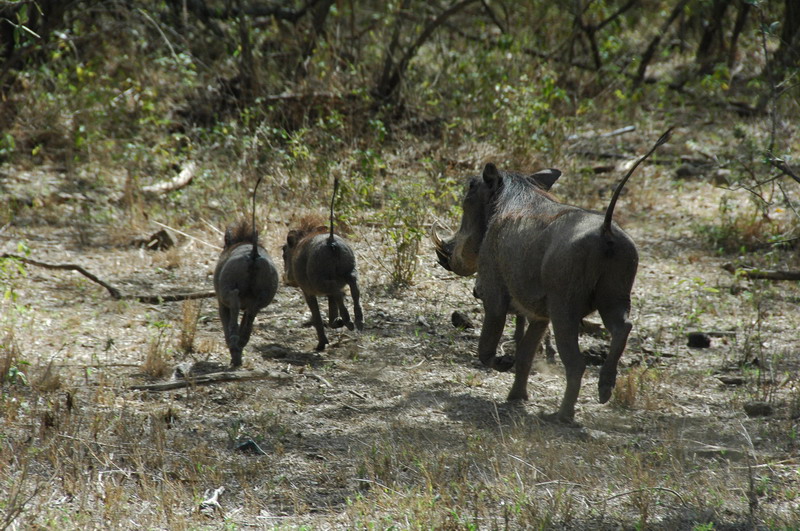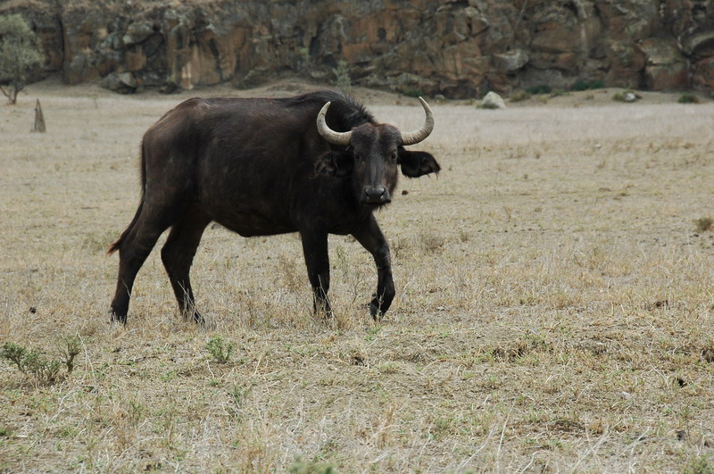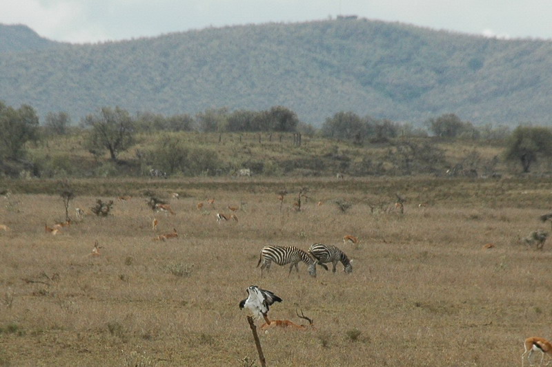 Checked into the National Park, and lightened of a few thousand shillings, we proceeded. There were a surprising number of animals close to the road - note the eagle in the foreground, who shortly afterwards flew up carrying a snake.