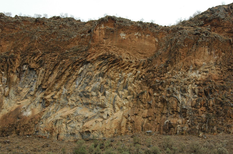 The central tower from below - you can just about see the vertical line of lava in the cliff face below.