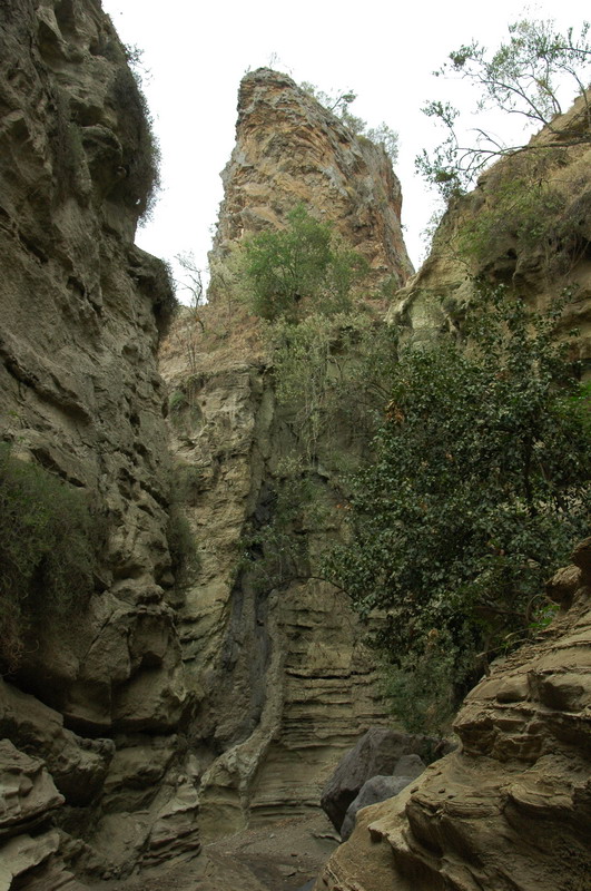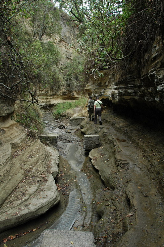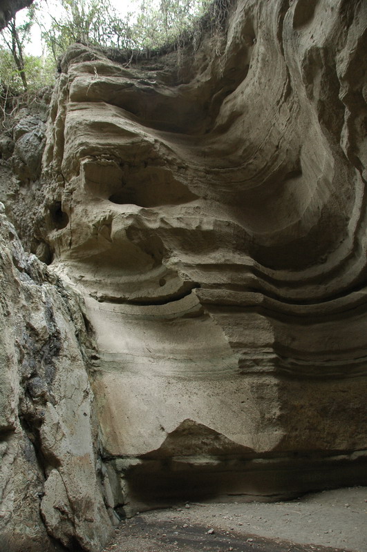 The end of the hike up this branch - a dry waterfall - but you can tell how much water once flowed by the wear on the rock face.