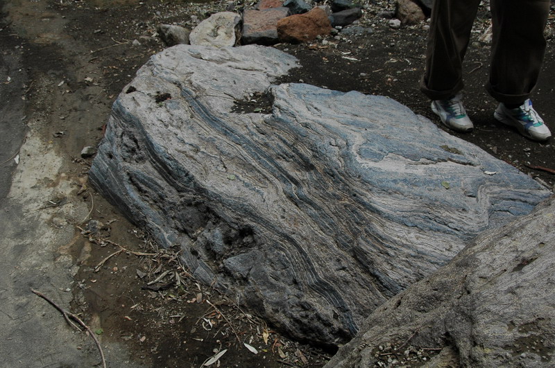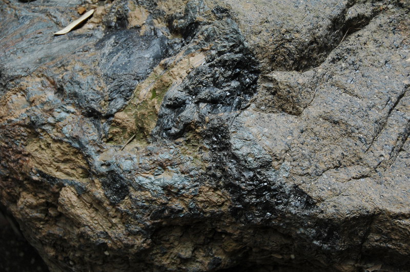 Heat and pressure have strange effects on the rocks - the black stuff is effectively glass (used for arrow heads in days gone by)