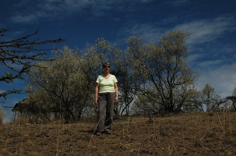 Meld and Kimatia survey the view. Note the land nearest the top is extensively cultivated - fertile and (at the cool temperatures at this altitude) good for crops like potatoes.