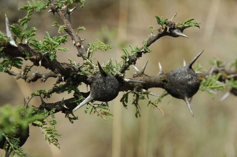 Fruits on the thorn bushes - the giraffe are able to use their long tongues to extract them round the thorns. (A thorn went through the sole of my shoe and I can confirm it was sharp!)