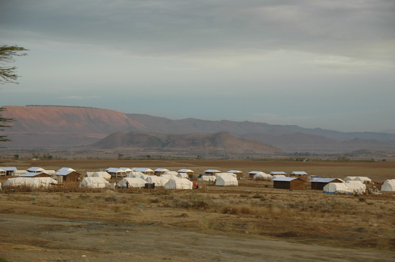 We then followed the North Lake Road which runs up the west and north of the lake back to the highway. This was a mistake as it is not only gravel but bad gravel - rocky and uneven. It took ages, and the car overheated. We stopped at a clinic to beg water for the radiator. Several stops up the rough road to refill, but we made it to a garage where they jetwashed the radiator and the journey home was OK (despite the ascent of the side of the rift valley - 2000 feet or more). As we approached the ascent, with the setting sun shining on the escarpment, we saw a number of camps for IDPs (internally displaced persons, affected by the post-election violence n January 2008) who've not yet moved home.