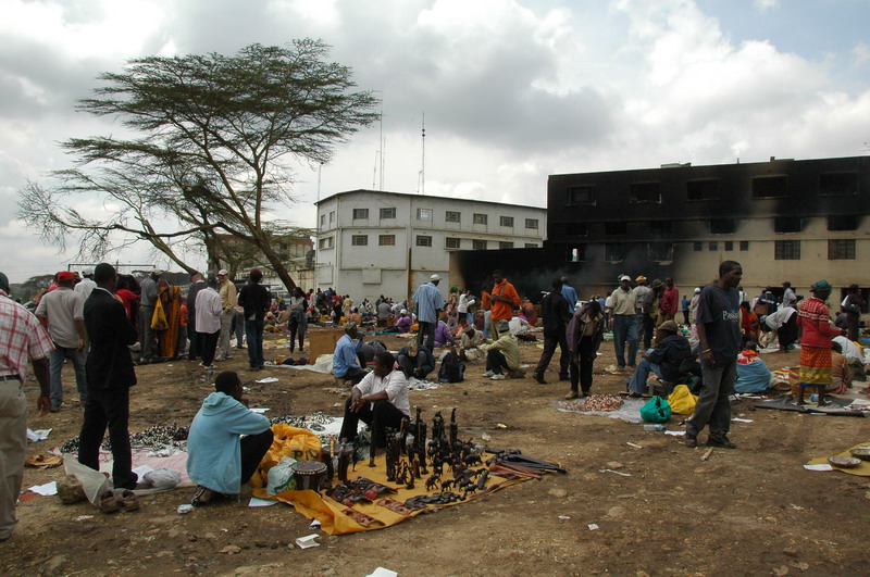 We then got a taxi to the Maasai Market. Not in the City Hall car park where I went last year, but a muddy patch of land near River Road. The adjacent building was set on fire last week in some dispute over redeveloping the land. Men were demolishing it by hand, although it was still smouldering. In the market, nightmare brokers tried to persuade us to pay ludicrous prices, and despite resisting I think we paid over the odds.