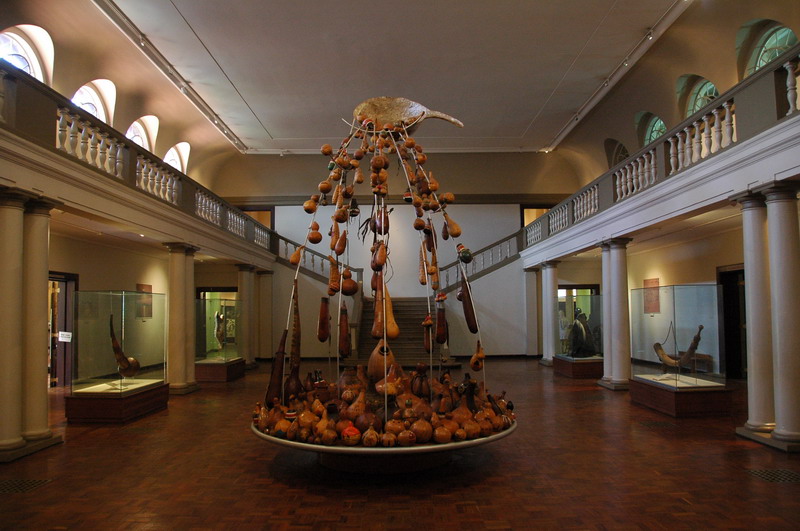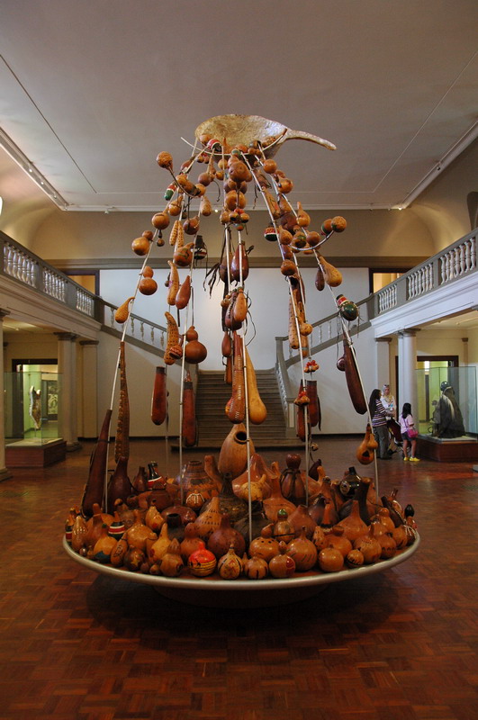 A display of decorated gourds from all over Kenya in the main hall.