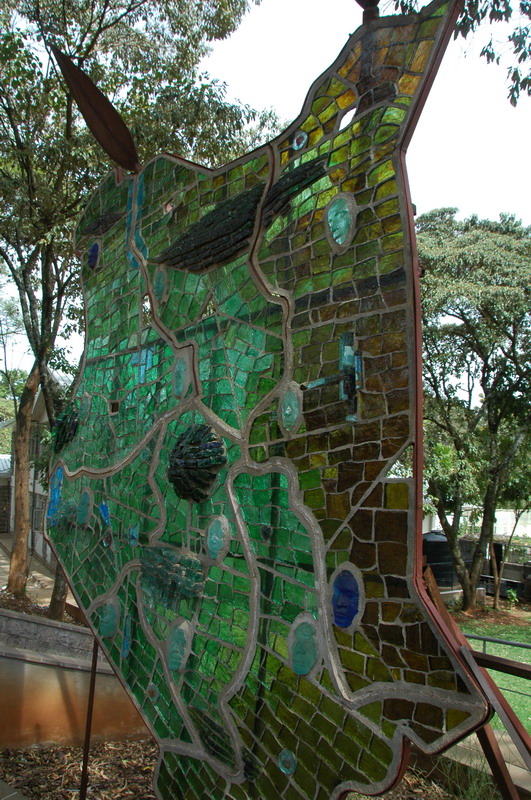 Outside the museum are gardens - with this map of Kenya made from recycled glass.
